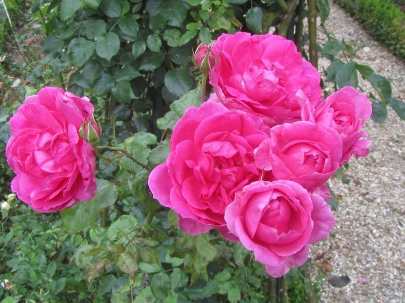 Petit grimpant estimé, idéal pour habiller une colonne ; grandes fleurs doubles de forme rose ancienne, rose carminé ardent, tolère une ombre légère. Belle floraison parfumée, continue et généreuse